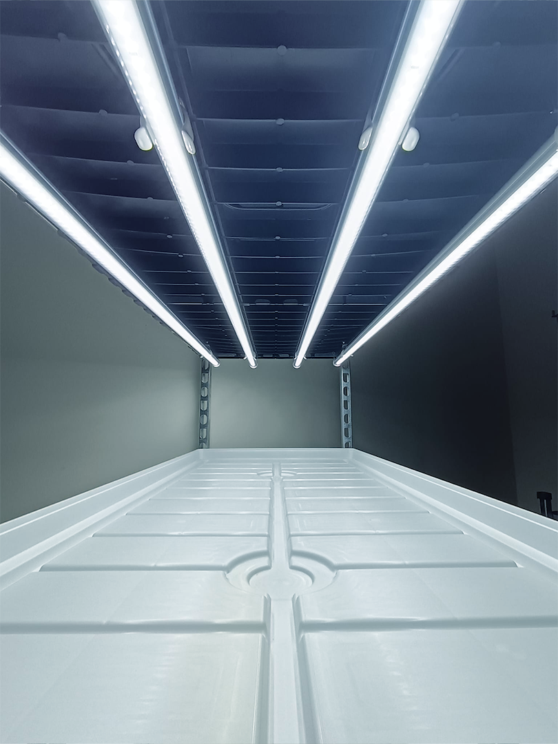 - Light Management: Each level is equipped with fixed lighting that guarantees uniform photon distribution over every single plant, avoiding shadows.