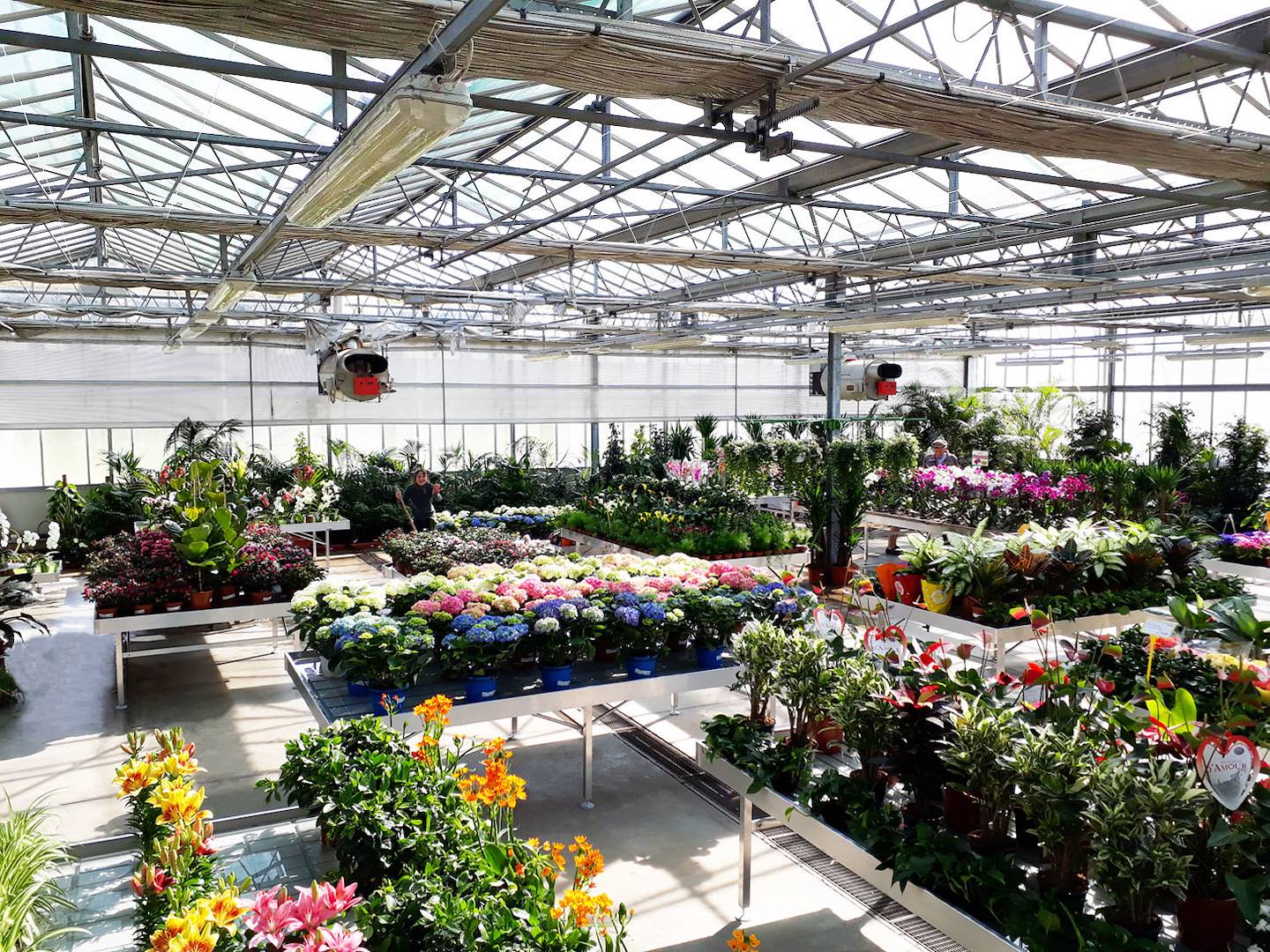 The bench for plants and flowers is the most used displaying support in Garden Centres all over Europe. In particular inside Garden Centres it is best used in the "4-seasons" greenhouse, the greenhouse normally dedicated to seasonal plants such as Geraniums, Surfinias, Cyclamen; also in nurseries, where the tendency is to display plants on display benches rather than on the ground, it is equally effective for plants such as Azaleas, Rhododendrons or Buxus.